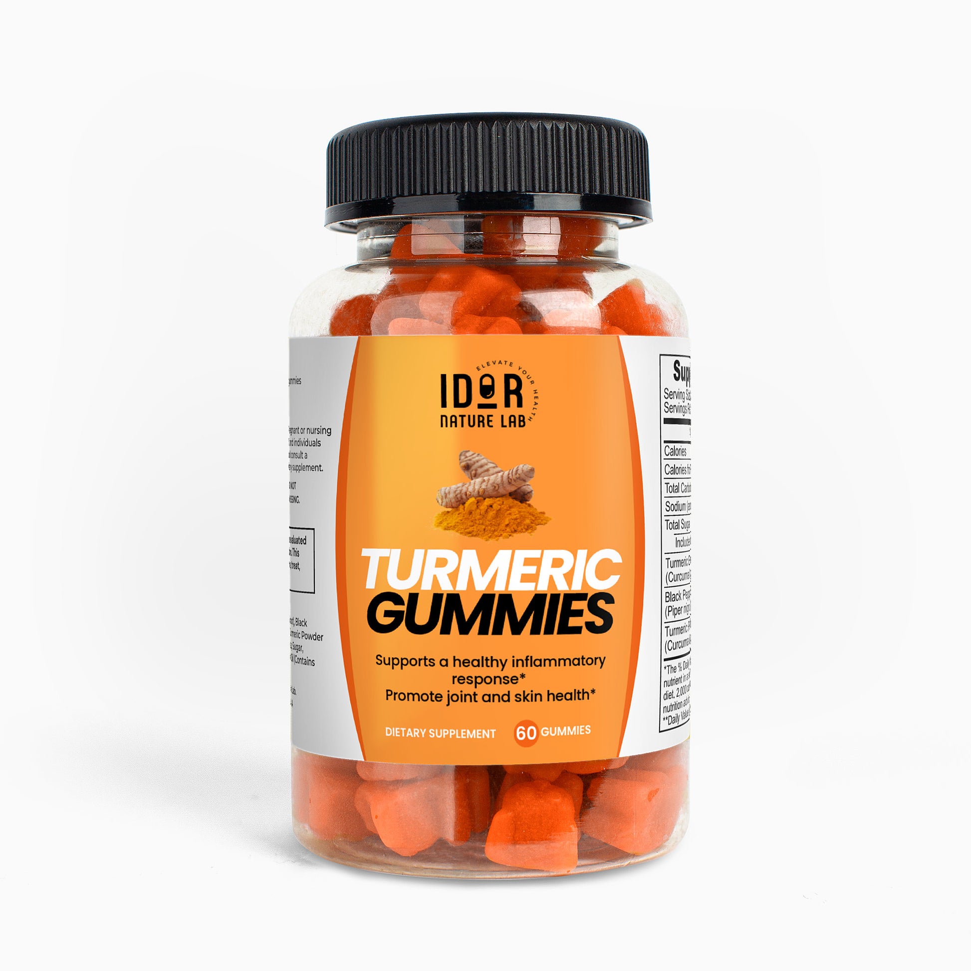 Ingredients: Sodium (as Sodium Citrate), Turmeric Extract (Curcuma longa L.)(root), Black Pepper Extract (Piper nigrum)(fruit), Turmeric Powder (Curcuma longa L.)(root), Glucose Syrup, Sugar, Glucose, Pectin, Citric Acid, Sodium citrate, Vegetable Oil, (contains Carnauba Wax), Ginger Flavor.